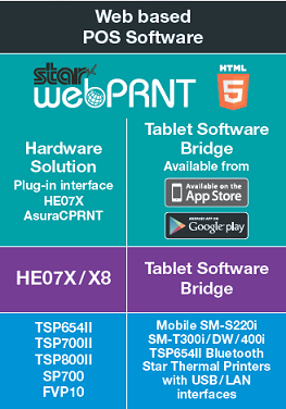 為了提供低成本的硬件或軟件的網絡解決方案, STAR WebPRNT 除去了慣常網頁打印依賴打印機驅動的做法,利用 HTML 及 JavaScript 的標準, 提供毋需打印機驅動、 使用不同的瀏覽器而打印一致的各式收據。 STAR WebPRNT 支持所有標準的收據要求, 如圖標, 條形碼等。 STAR 充分展現了 WebPRNT 的強勁能力, 是經銷商以及軟件開發商與 STAR 廣泛的 POS 打印機合作的有利工具。